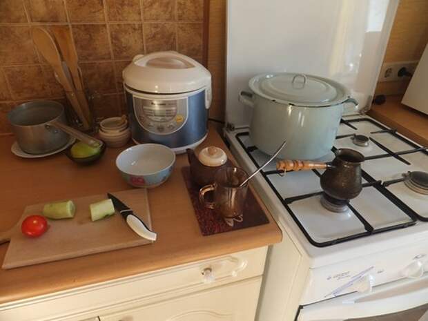1 утро начинается с того, что я ставлю в большой кастрюле греть воду.